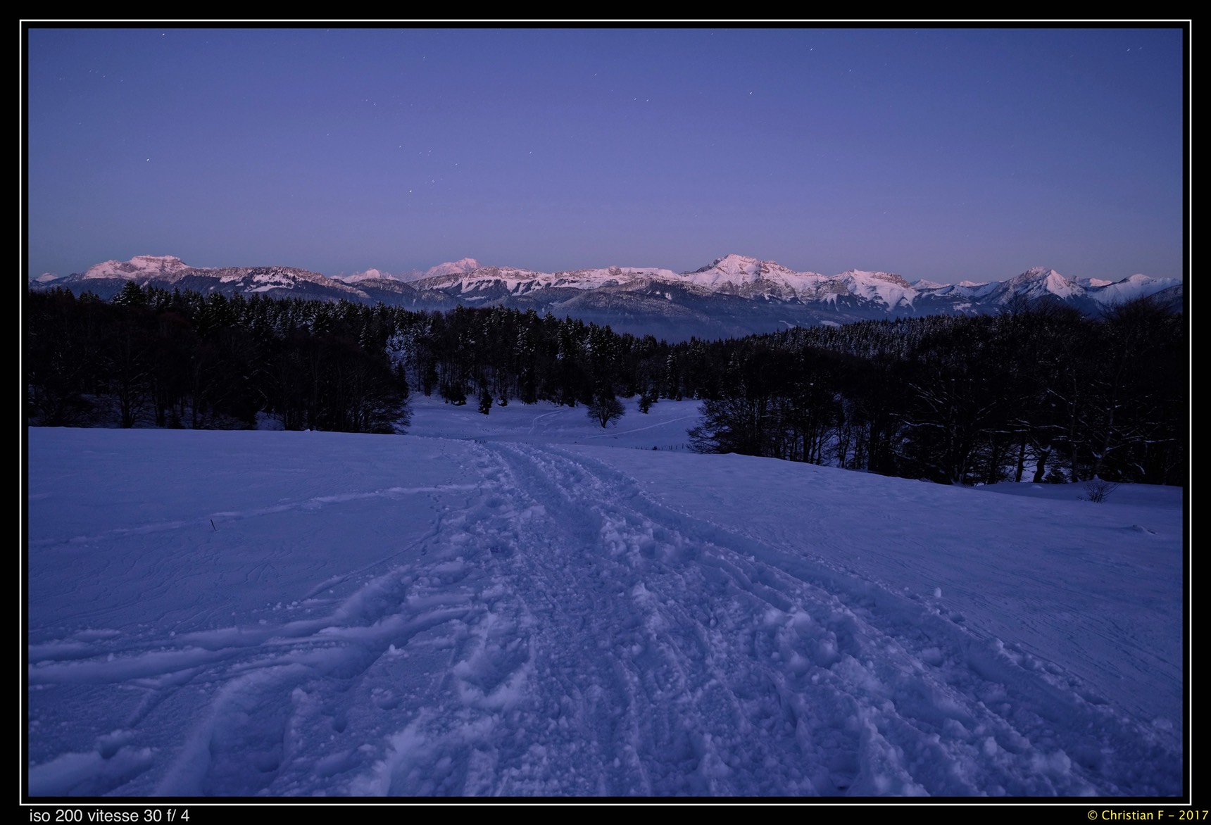 Après d’abondantes chutes de neige, début décembre, c’est l’occasion d’une randonnée en raquettes sur le plateau du Revard, avec une nuit au chalet Pernet.